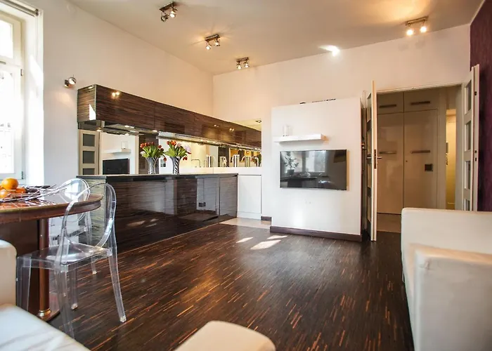 Obiekt posiada pełnowymiarową kuchnię, gdzie dla wygodnego pobytu przewidziano piekarnik i zmywarkę do naczyń. Apartament jest usytuowany o rzut kamieniem od dworca kolejowego Warszawa Powiśle.